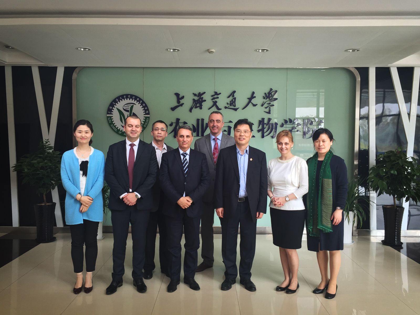 On April 14, Congressman of Bulgaria and Chairman of the Culture and Education Commission Ms. PolinaKarastoyanova, Deputy Dean of Bulgarian Academy of Agricultural Sciences Professor PlamenMollov, Deputy Consul General of Consulate General of Bulgaria in Shanghai Mr. Marin Dimitrov, General Manager of Bull act Yogurt Corporation Mr. DimitarPetkov, and Deputy General Manager of Shanghai Office of German Chamber of Industry and Commerce Doctor Sun Yangyang came to visit our school. Dean of the School of Agriculture and Biology Professor Zhou Pei, Professor Zhang Shaohui of the Department of Food Science and Engineering, Teacher Jiao Shunshan and other relevant teachers attended the meeting.