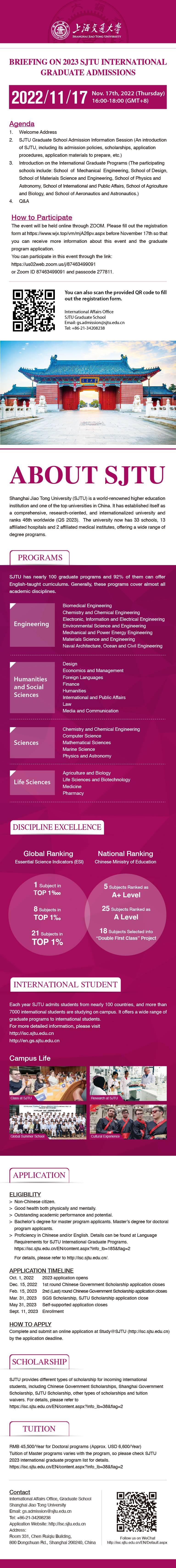 [Upcoming Event] Briefing on 2023 SJTU International Graduate Admissions (Nov. 17th, 2022)