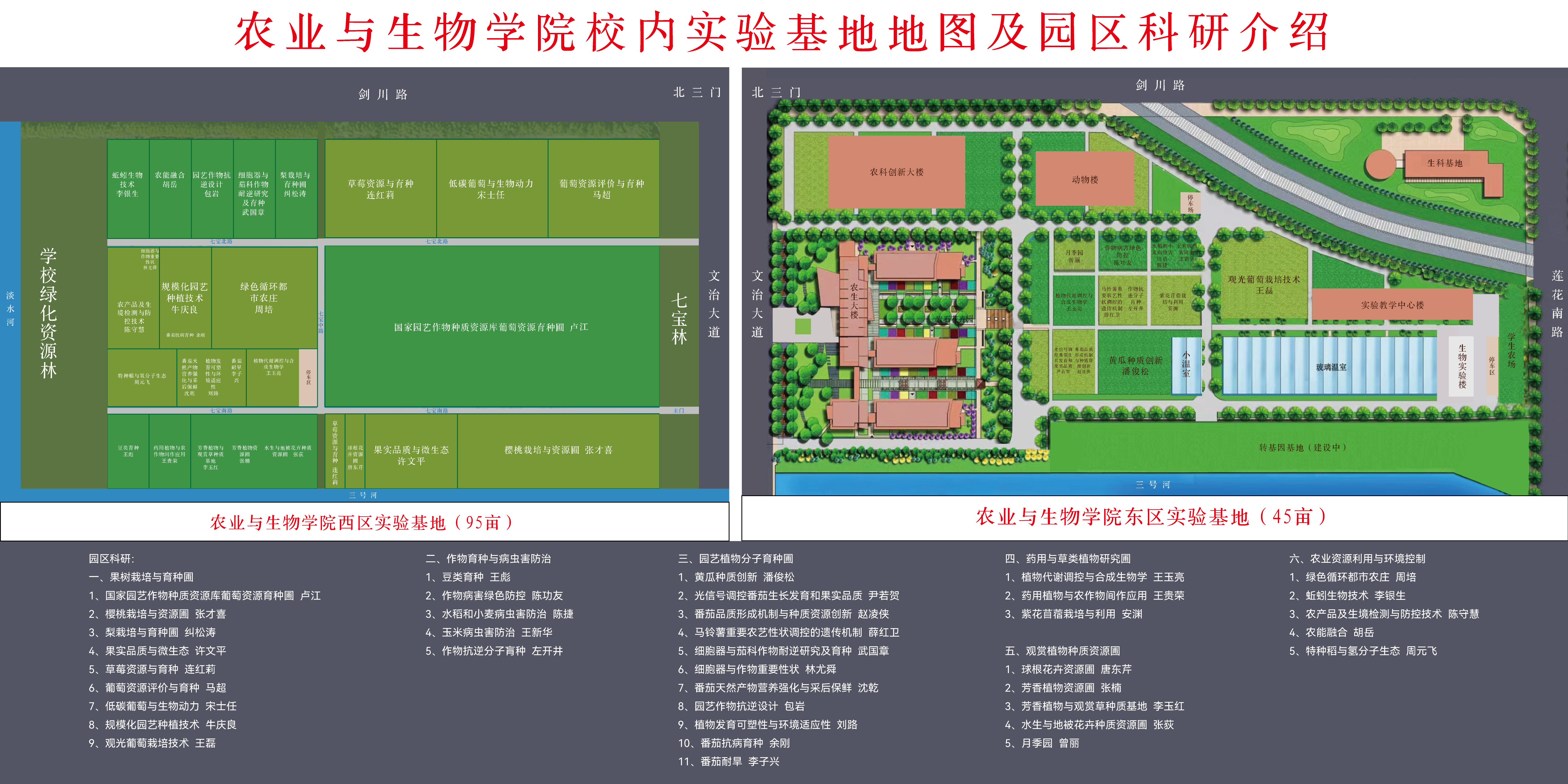 实验实习场区域包括校本部农场和浦江绿谷基地,总占地413亩;各型温室11000平米;配备拖拉机、开沟机等农业机械设备;综合试验楼三座,房屋建筑面积2440平米。