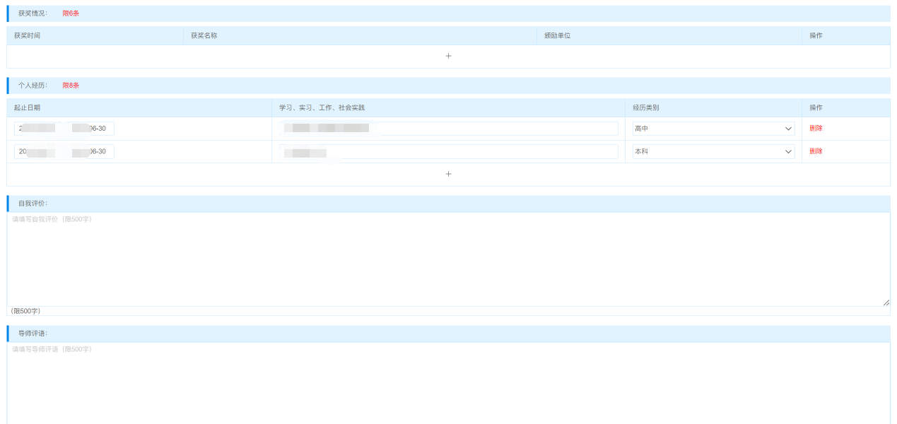 5.“获奖情况”:如实填写获得的各类荣誉、奖学金、竞赛奖项等不含助学金