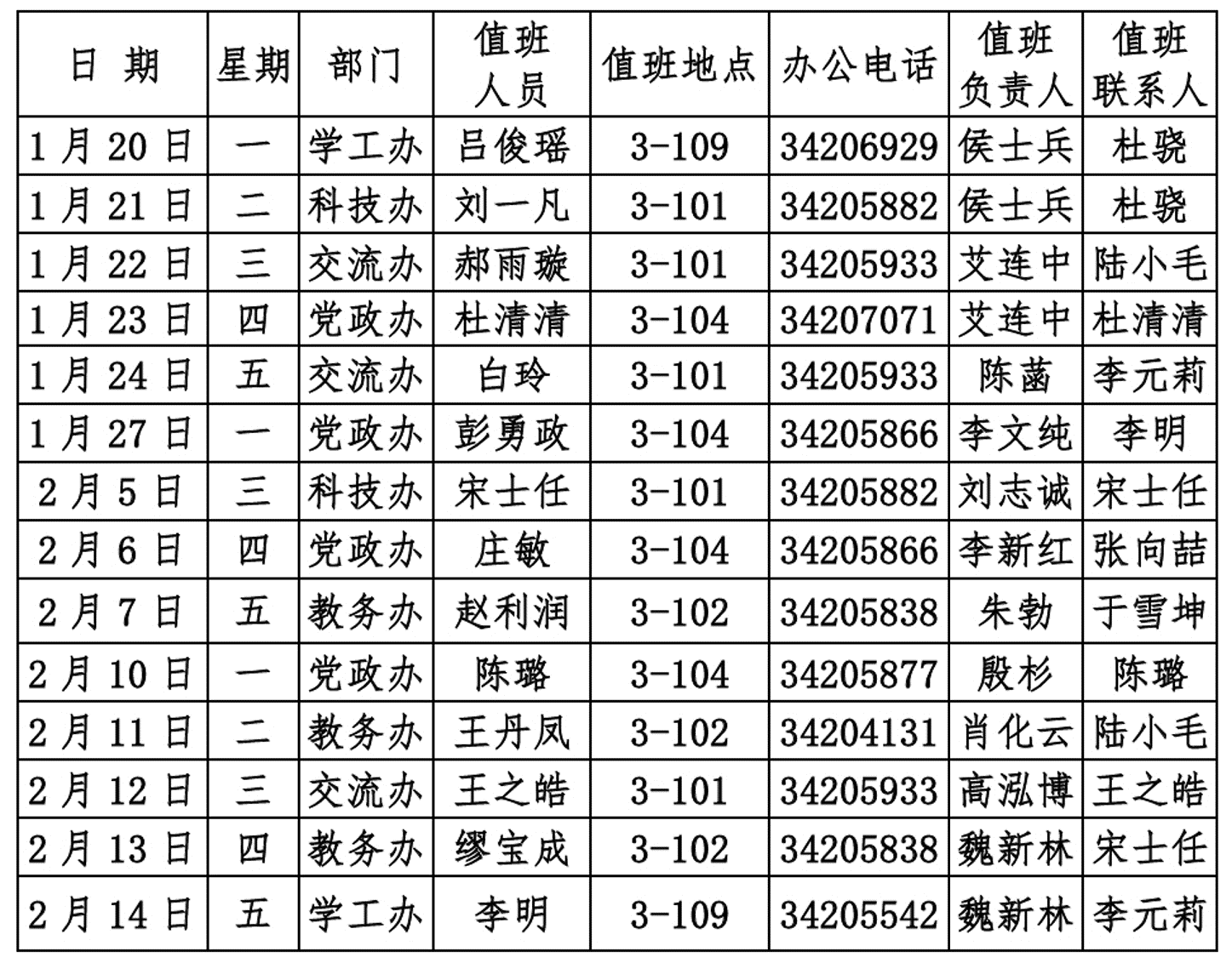 伟德国际19462025年寒假值班表