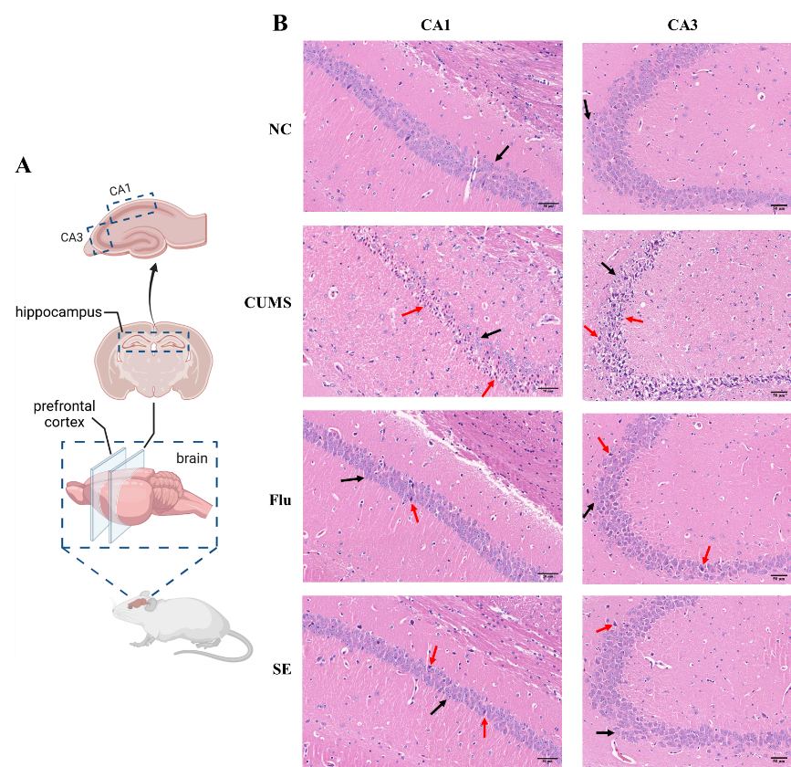 图2. SE缓解CUMS暴露小鼠的海马体损伤