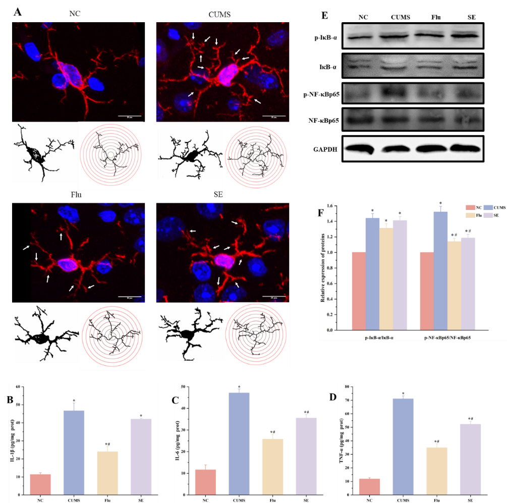 图3. SE抑制小胶质细胞的激活,缓解神经炎症